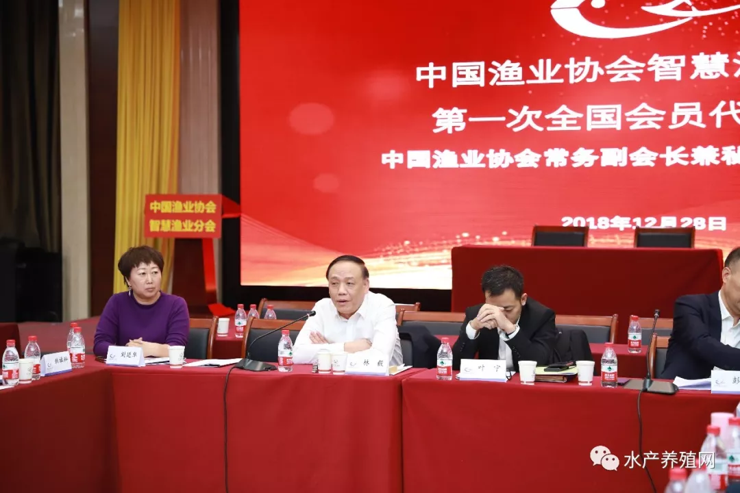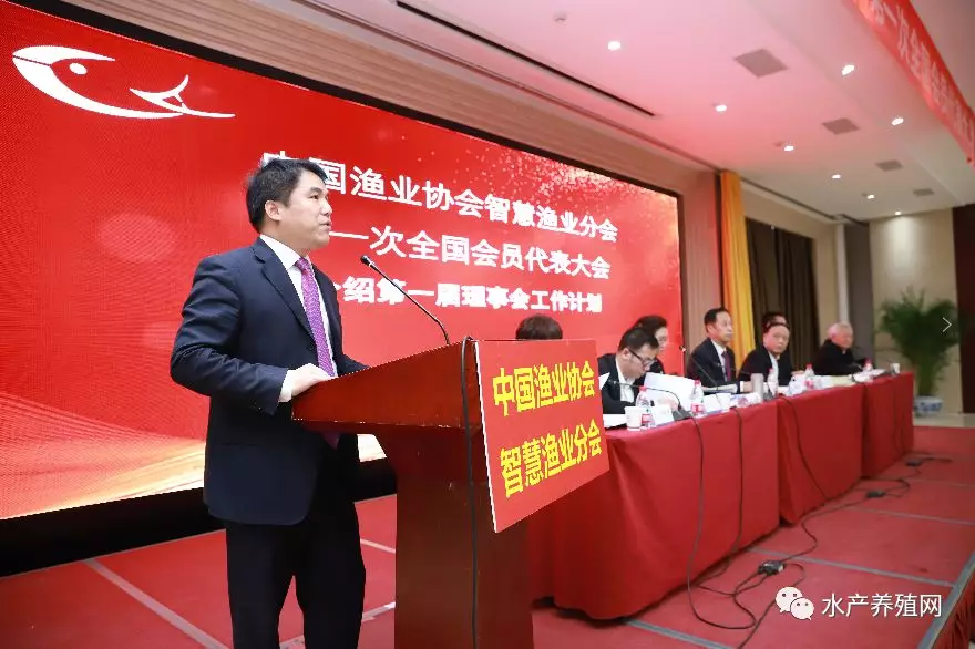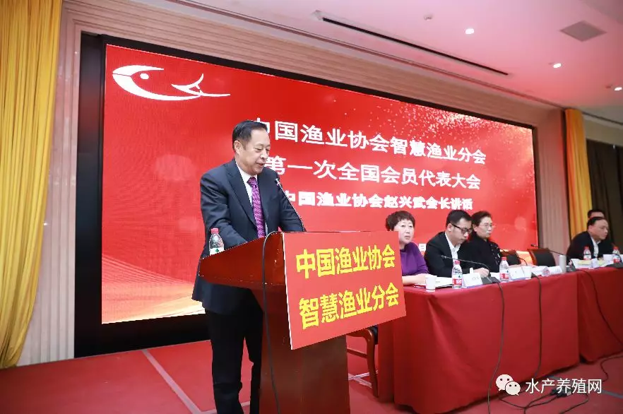 赵兴武会长在讲话中代表协会向会议的成功召开,向选举产生的领导班子和理事会成员,向大会聘任的名誉会长、顾问和智库成员表示衷心祝贺,对大家在年底百忙之中莅临到会表示热烈欢迎。他指出,中国渔业协会成立智慧渔业分会,是我们深入学习贯彻习近平新时代中国特色社会主义思想和党的十九大精神,全面推进十三五渔业发展规划实施,促进渔业创新、协调、绿色、开放、共享发展的重要举措,利国、利民、利渔、利企。分会会员都是物联网、大数据、云计算、人工智能、通讯网络、信息技术与管理、水产品精深加工等方面的优秀代表,希望大家能够积极参与到我国渔业信息化建设中,充分利用现代信息技术补齐我国渔业发展短板,提升渔业生产和管理水平,进行精细化、智能化、网络化控制,实现高效发展;突破资源和生态环境对渔业的约束,实现绿色发展;提升渔船渔港装备水平和防灾减灾能力,保障安全发展,为渔业转型升级和供给侧结构性改革提供强劲动力。智慧渔业分会作为协会为渔业相关单位与信息技术企业搭建的交流合作平台,要发挥好帮助渔业和信息技术企业开拓新的发展空间,促进双方资源共享和融合发展的作用。赵兴武会长要求智慧渔业分会坚持政治建会不动摇,切实加强分会的制度建设、组织建设、业务建设、能力建设、思想建设和规范化建设,努力把分会办成会员之家,服务好广大会员,加快落实各项工作,不断推进智慧兴渔,为建设现代化渔业强国做出更大贡献。
