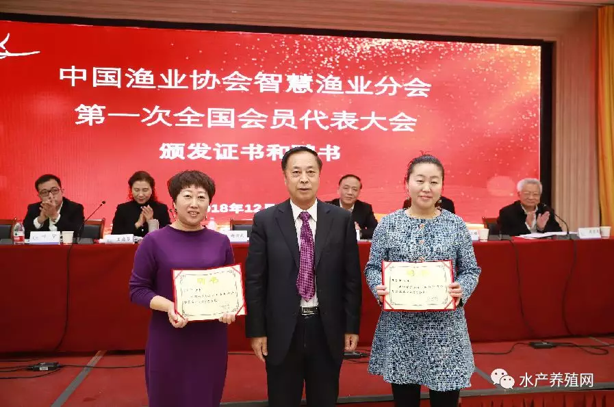 中国渔业协会会长赵兴武、副会长林毅为理事颁发证书