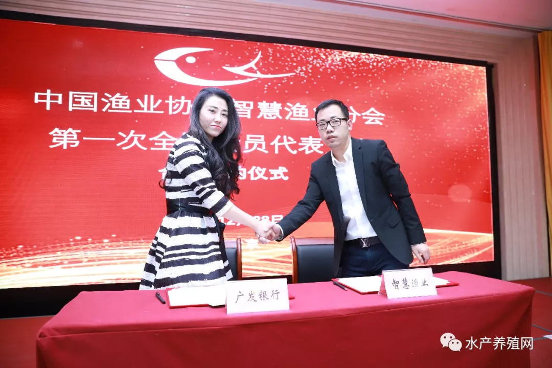 会上还举行了合作签约仪式。智慧渔业分会分别与广发银行、中国国际贸易促进委员会台港澳企业服务中心签订了合作协议,致力于为分会会员提供相关金融服务,推动供应链资源的集聚和共享。分会会长叶宁和分会名誉会长刘延华,分别代表宁波海上鲜信息技术有限公司和中联智科高新技术有限公司,共同签署了战略合作协议,双方基于共同理念,决定通过优势互补、强强联合,以促进彼此事业的更大发展。