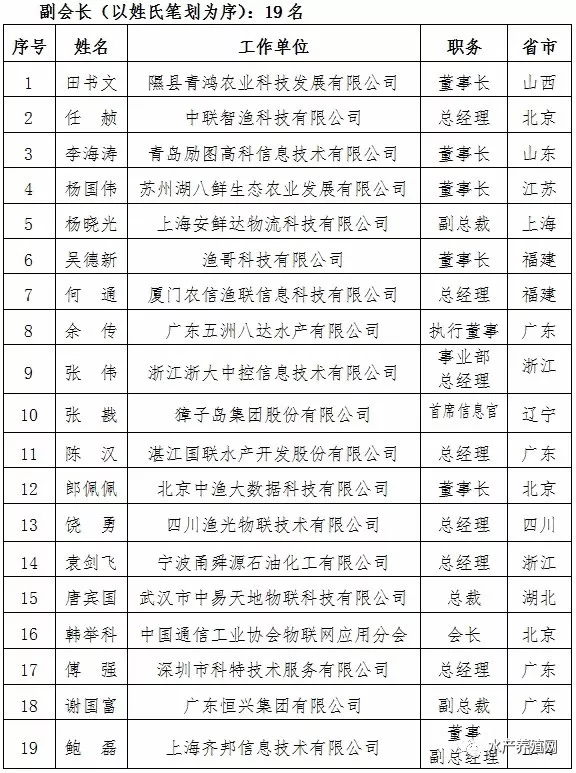 附表2、智慧渔业分会第一届理事会会长、副会长、秘书长名单