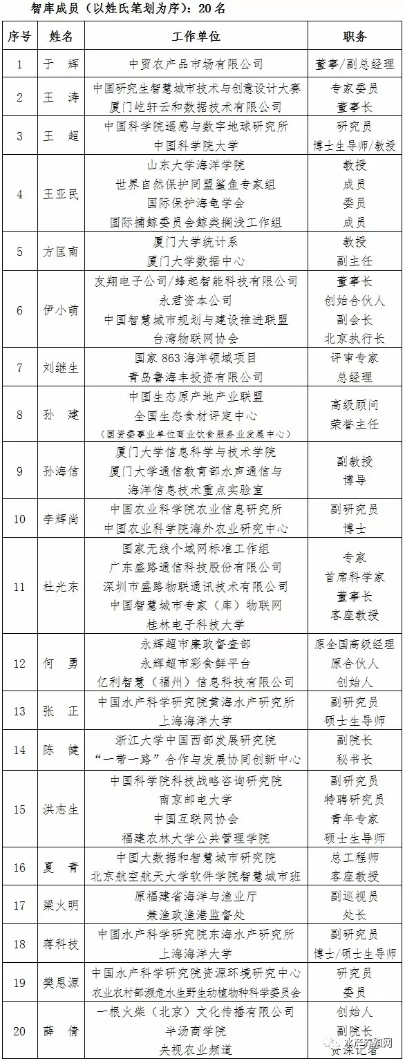 附表1、智慧渔业分会提名名誉会长、顾问、智库成员名单
