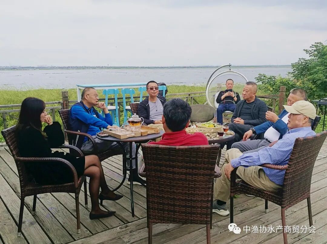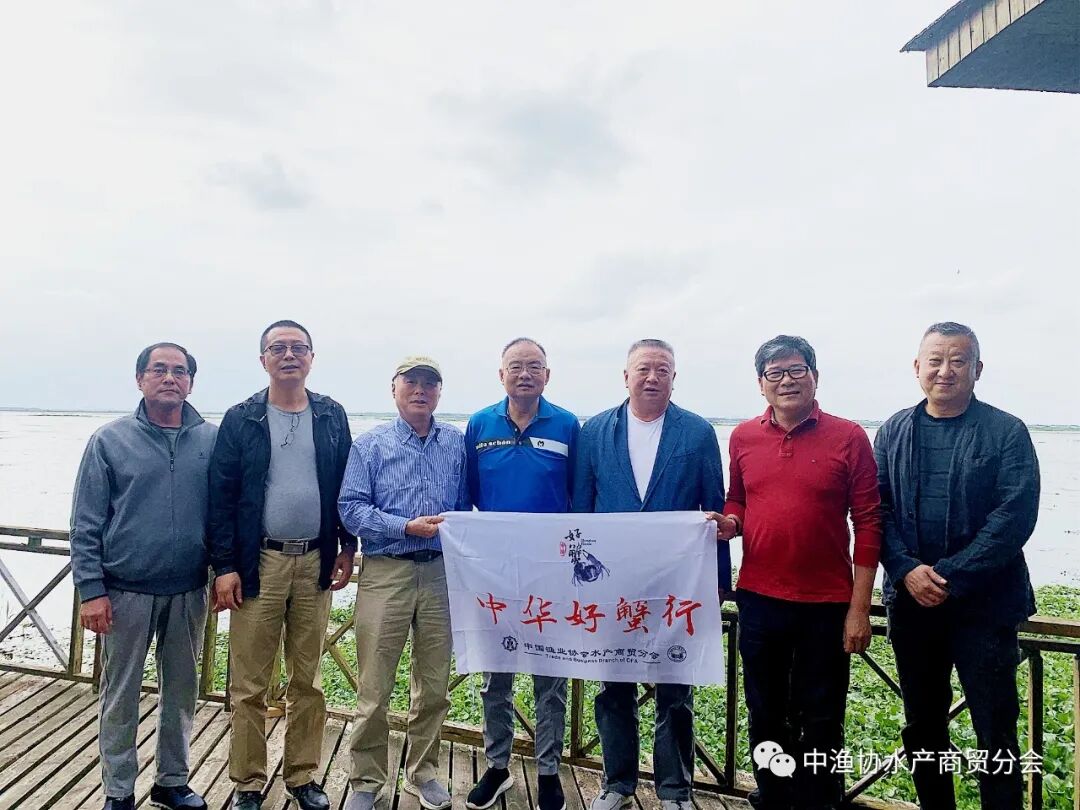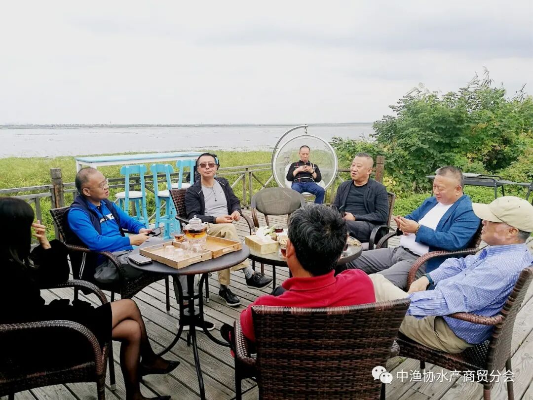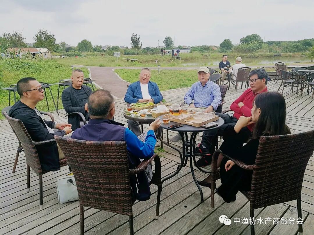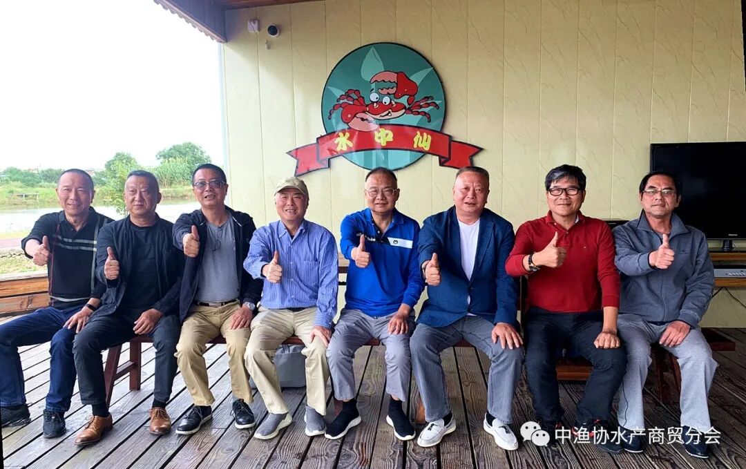 10月7日,国庆节和中秋节双节长假之际,分会大闸蟹营销品牌联盟一行在分会执行会长、大闸蟹营销品牌联盟理事长葛锦海和分会荣誉会长、大闸蟹营销品牌联盟荣誉理事长杨维龙带领下,专程赴苏州昆山市湖滨路的“水中仙阳澄湖大闸蟹渔庄'拜会中国渔业协会副会长、水中仙控股投资有限公司董事长刘忠,沟通交流我国大闸蟹产业最新发展情况。