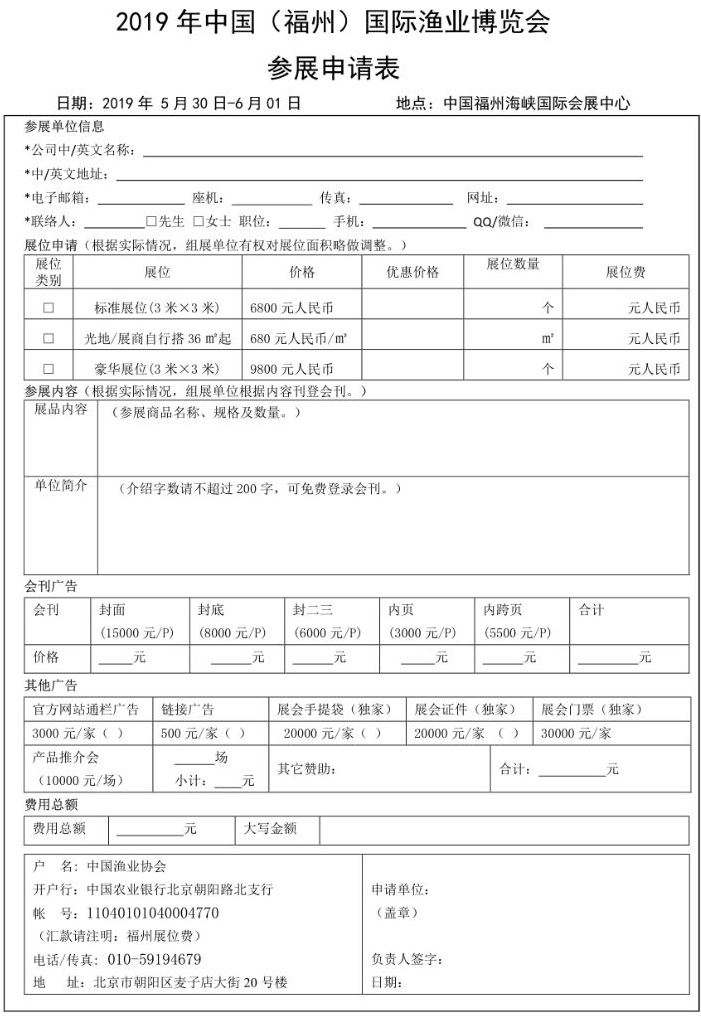 请按要求填写《参展申请表》,加盖单位公章,传真至010-59194679或扫描件发送至cfahzb@126.com。