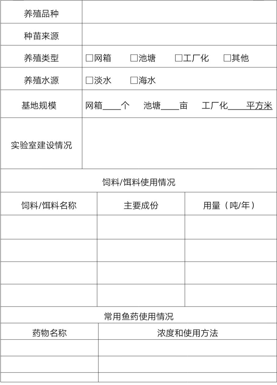 3、填写《养殖河鲀鱼源基地备案申请表》,要求字迹工整、术语规范、印章清晰、内容完整真实,其他申报材料要求内容真实。
