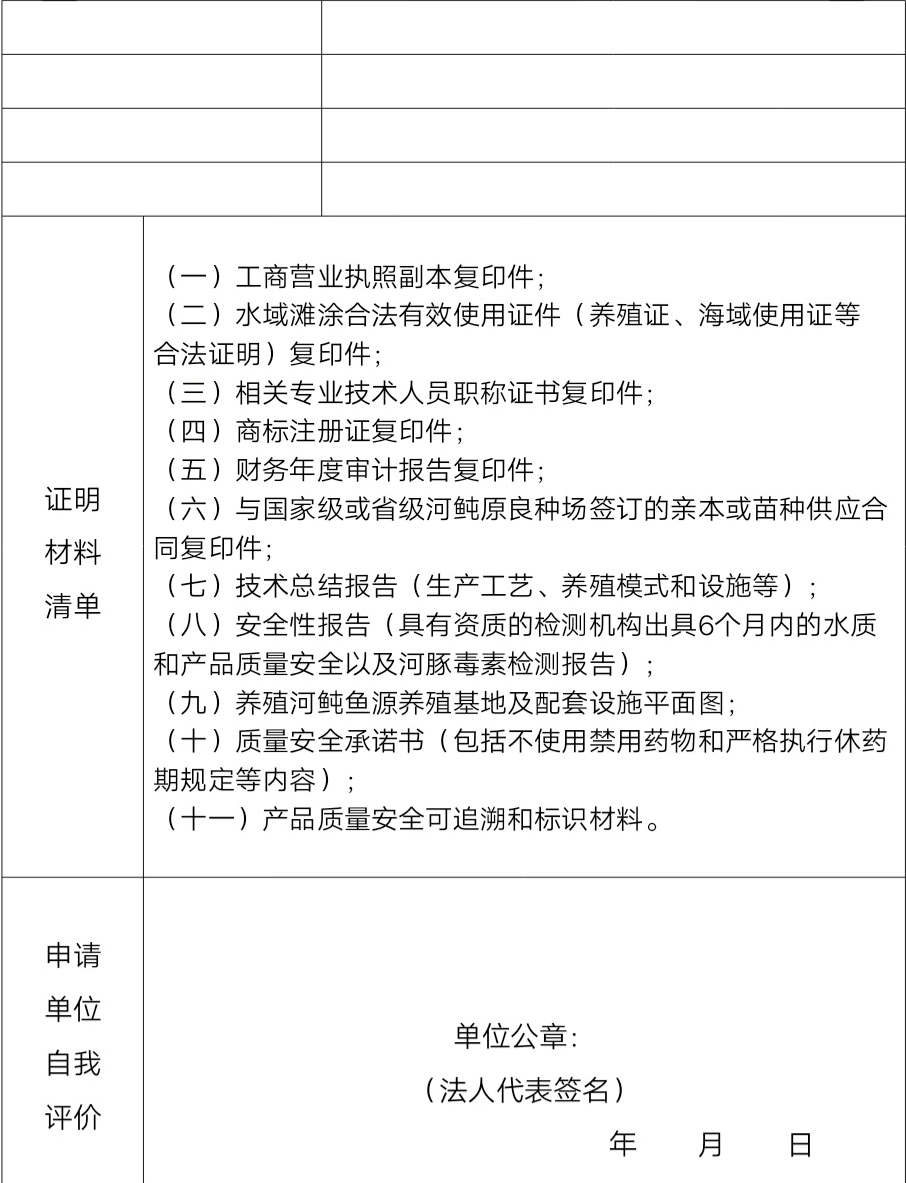 申请者填报《养殖河鲀鱼源基地备案申请表》(附件2),并提供下列证明材料: