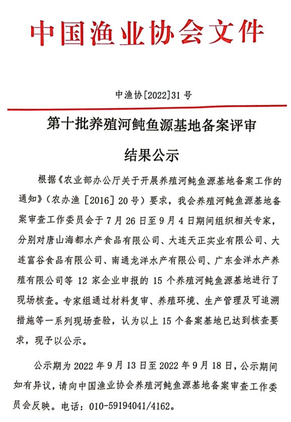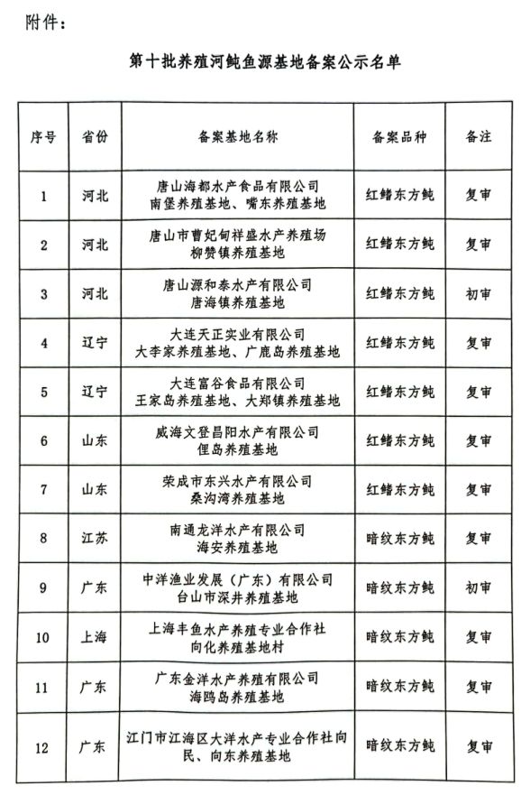 2022养殖河鲀鱼源基地备案评审结果公示