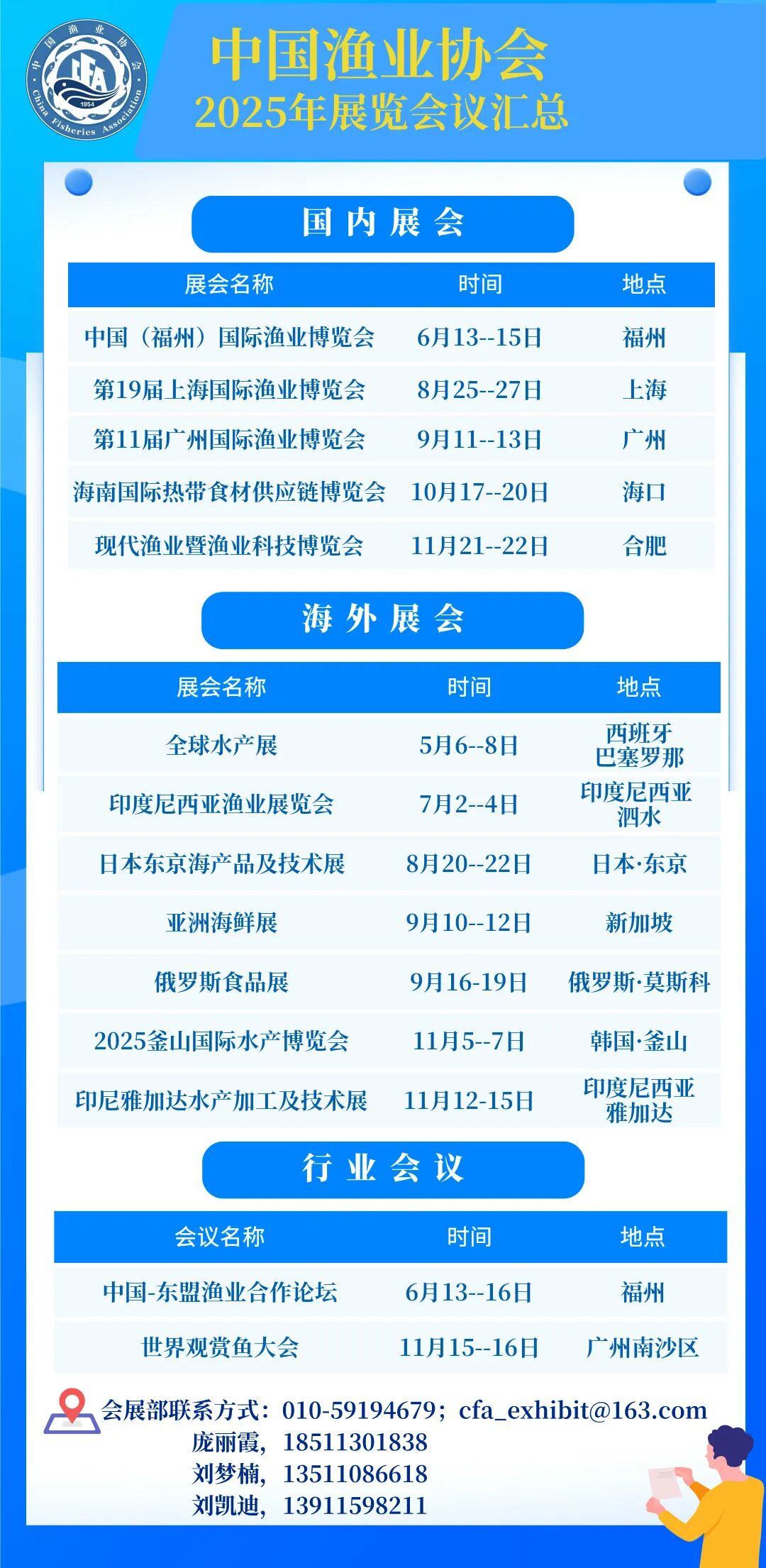 冰鲜海产品、水产加工品;调味料、食品添加剂;水产加工、冷冻冷藏、食品包装及物流等设备;养殖设备与技术;食品卫生管理、环保设备和养护设备与技术等。