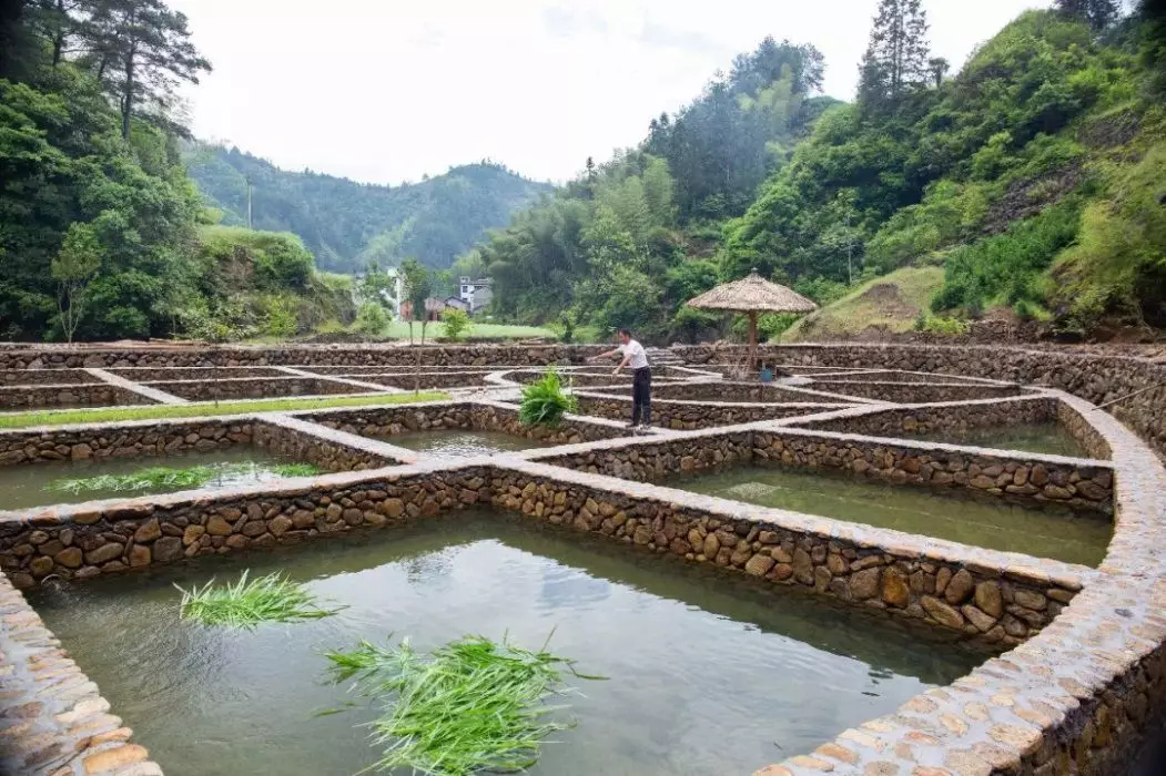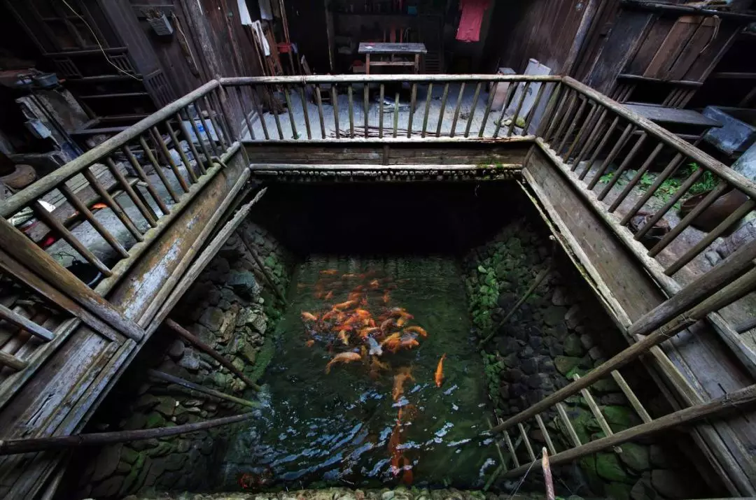 在何田乡,目前仍完整保存着古人进行山泉流水养鱼的重要遗址——“高源一号”百年古宅。“高源一号”内原本的天井被先人们改造成清水鱼塘,山泉穿塘而过,鱼在塘中、塘在屋内,古朴的徽派建筑,悠远的流水鱼塘。