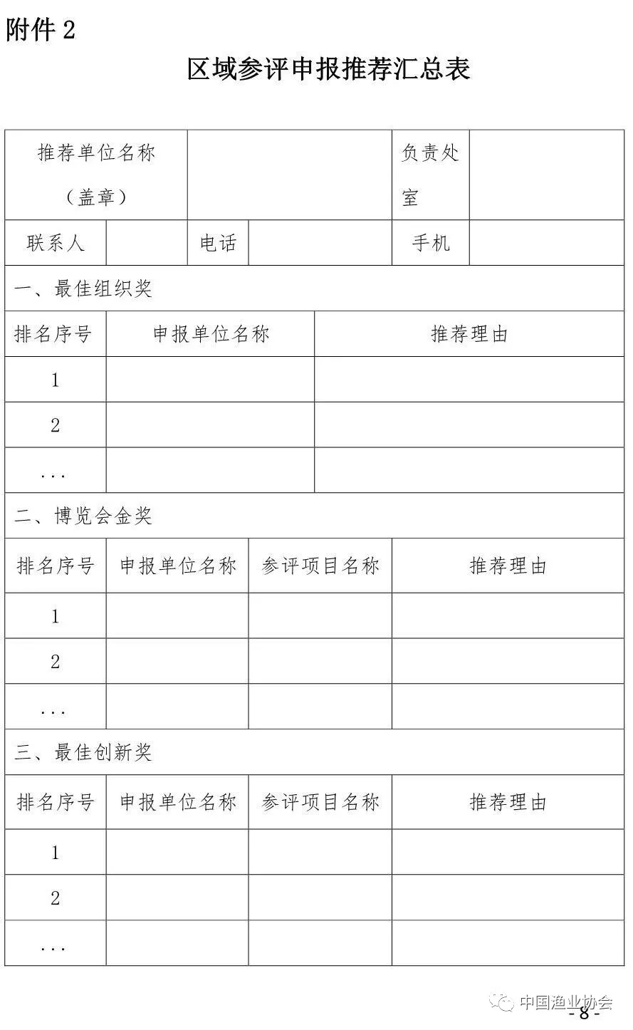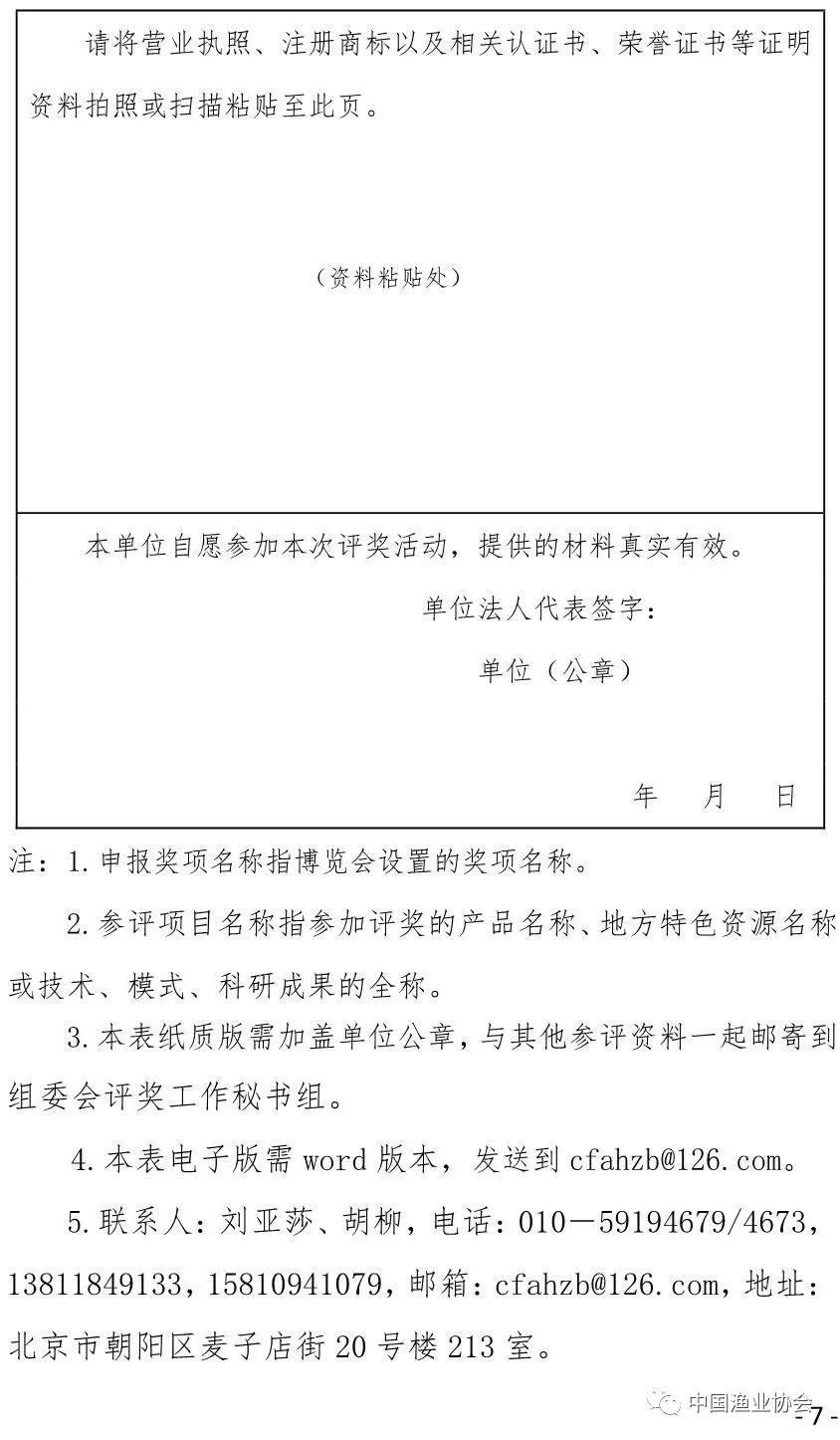 表格下载地址:www.china-cfa.org通知公告栏,或微信公众号(中国渔业协会)下载。