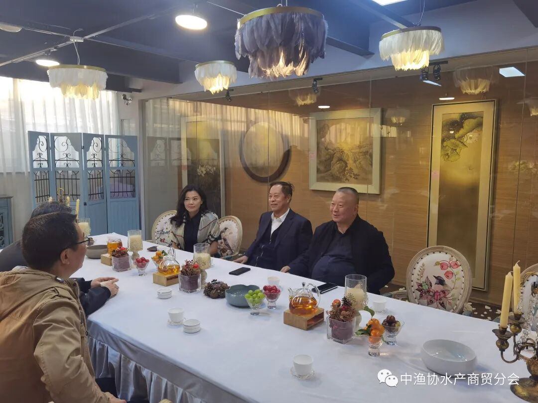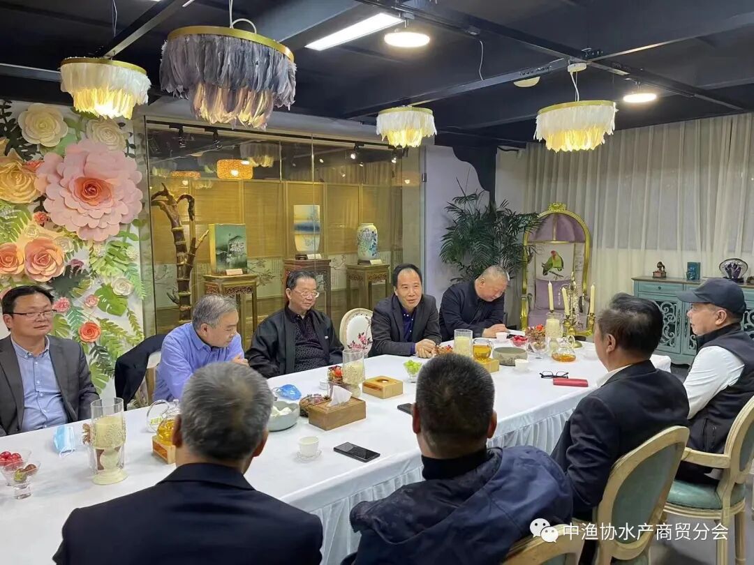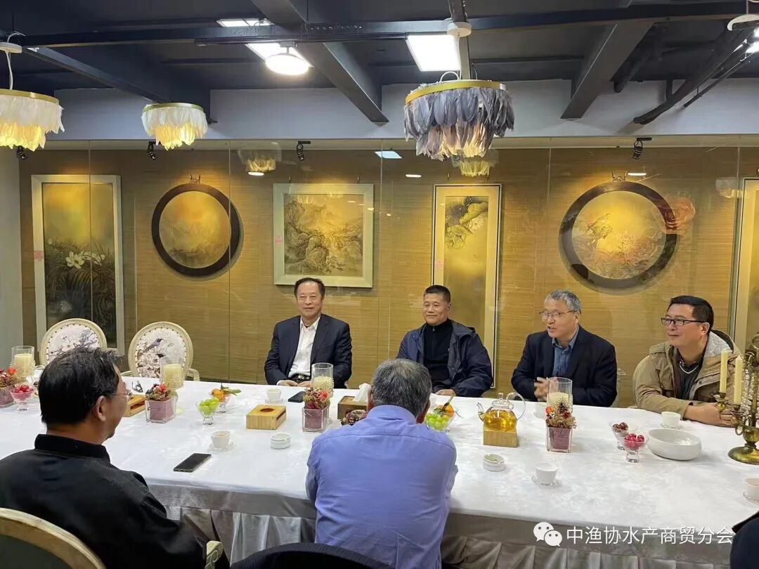 11月6日,中国渔业协会赵兴武会长在应邀参加上海海洋大学建校110周年庆祝活动之际,前往水产商贸分会考察工作,并与上海水产行业协会创始会长、荣誉会长凌孔山和秘书长吴常产,上海冷冻食品行业协会法人兼常务副会长、上海水产行业协会副会长、上海国际渔业博览会主办方上海艾歌展览服务有限公司执行董事韩友恒,分会品牌建设委员会专家、上海海洋大学教授成永旭等进行交流座谈,受到分会薛从发会长,葛锦海执行会长,中国渔业协会水族造景分会会长刘波,七彩神仙分会会长、上海海洋大学水产与生命学院副院长陈再忠教授等的热烈欢迎。