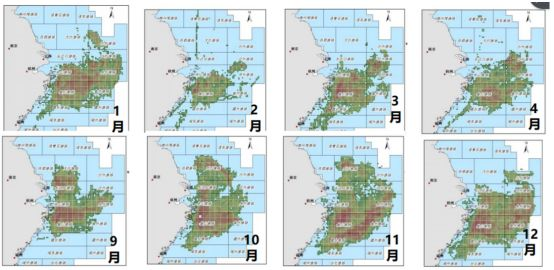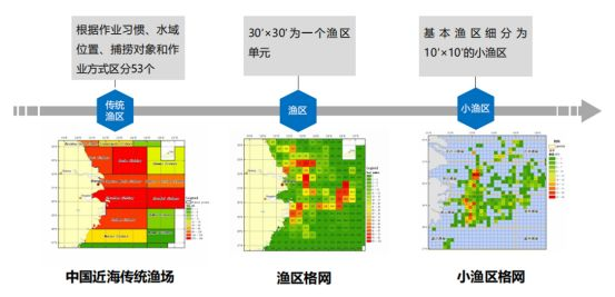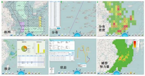 北斗挖掘结果服务:可叠加渔场、渔区、小渔区、渔业协定区、禁鱼线、专属经济区等图层,可按海域格网、行政区划等查寻,获取捕捞强度、渔船状态、分布等信息。