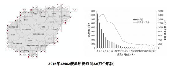 辅助海洋渔业资源限额捕捞管理:航次信息的数据挖掘为限额捕捞提供有效的参考数据,对渔获数据上报起到很好的监督作用,可存进渔业管理和资源养护。
