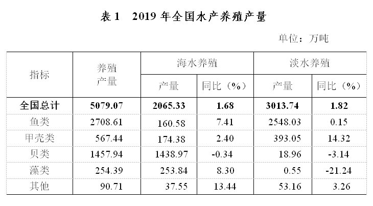 全国水产品总产量6480.36万吨,比上年增长0.35%。其中,养殖产量5079.07万吨,同比增长1.76%,捕捞产量1401.29万吨,同比下降4.45%,养殖产品与捕捞产品的产量比例为78.4:21.6;海水产品产量3282.50万吨,同比下降0.57%,淡水产品产量3197.87万吨,同比增长1.32%,海水产品与淡水产品的产量比例为50.7:49.3。