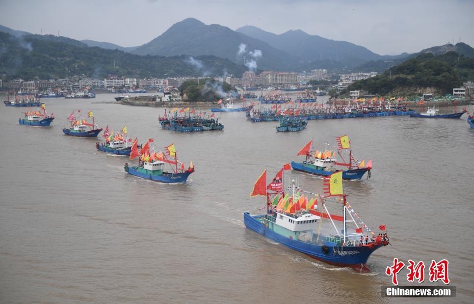 9月16日,渔船驶离象山石浦港。当日12时起,中国东海结束为期四个半月的伏季休渔,全面开捕。浙江宁波象山1298艘渔船离港驶向东海开始捕鱼作业,再现“千舟竞发”盛景。 中新社记者 王刚 摄
