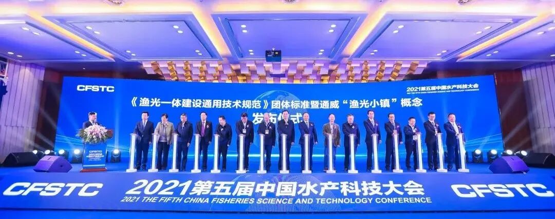 4月9日,由中国渔业协会主办的中国水产行业顶级盛会——2021第五届中国水产科技大会在成都通威国际中心隆重举行。本届大会以“科技引领 产业智变 质量兴渔”为主题,五大院士、四大首席科学家与政府协会、国际权威组织、农牧博士团以及通威、正大、新希望、澳华、唐人神、粤海等800余位重磅嘉宾汇聚一堂,会议规格和规模创历史之最。大会同期隆重举行了《渔光一体建设通用技术规范》团体标准暨通威“渔光小镇”概念发布仪式。中央电视台著名主持人刘栋栋倾情主持盛会。