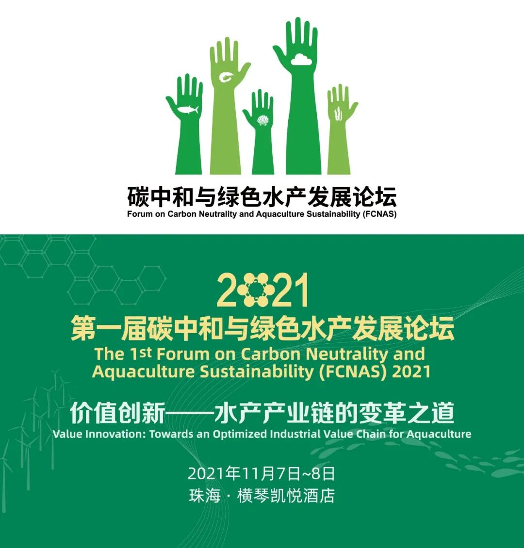 2021年11月7~8日,由中国渔业协会、世界自然基金会(瑞士)北京代表处和广东联鲲集团联合主办的全球首届“碳中和与绿色水产发展论坛(FCNAS)”将在广东珠海举办,我们诚挚邀请广大产学研领域的同仁齐聚珠海、共襄盛举,积极探讨水产业的低碳绿色发展新模式!