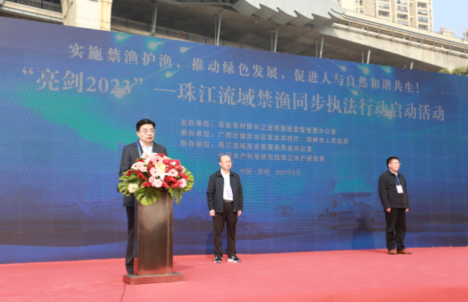 在广西梧州,马毅出席“亮剑2023”—珠江流域禁渔同步执法行动启动活动并讲话,强调要坚决贯彻落实党中央、国务院的决策部署,进一步增强养护水生生物资源、保护水域生态环境的责任感使命感,全力以赴打击“电毒炸”,坚持不懈清理“绝户网”,持之以恒整治“三无”船舶,从严从快查处各类非法捕捞行为,确保禁渔各项措施落地见效。