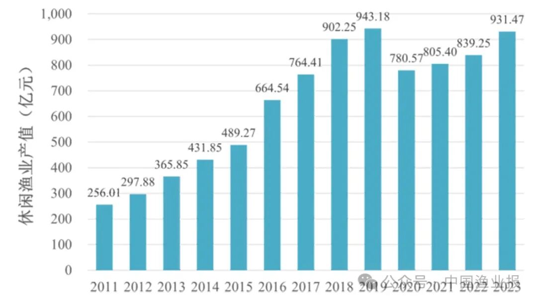 注:图中2011—2016年为《中国渔业统计年鉴》数据,2017—2023年为《休闲渔业统计监测调查年报》数据。