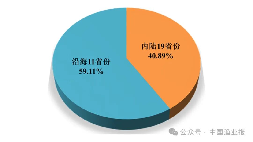 省际发展不平衡,沿海地区11个省份休闲渔业产值总和为556.00亿元,比2022年增加58.41亿元,占全国休闲渔业产值的59.69%;内陆地区19个省份休闲渔业产值总和为375.46亿元,比2022年增加33.81亿元,占全国休闲渔业产值的40.31%。沿海和内陆产值相差180.54亿元,同比增加15.77%。