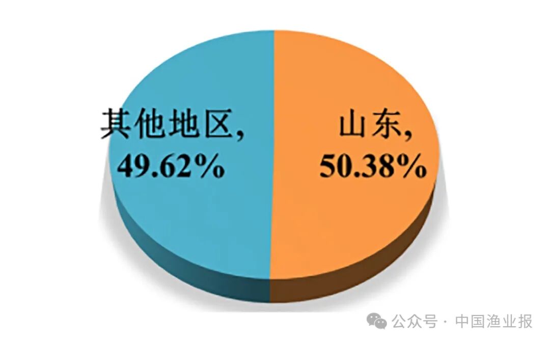 3.钓具钓饵观赏鱼渔药及水族设备。2023年,我国钓具钓饵观赏鱼渔药及水族设备营业额145.83亿元,同比增长4.67%。其中,观赏鱼渔药营业额52.16亿元,钓具营业额48.86亿元,水族设备营业额32.96亿元,钓饵营业额11.85亿元(见图6–1)。钓具产业中,山东的营业额占全国总额的50.38%;水族设备产业中,广东的营业额占全国总额的76.31%(见图6–2)。