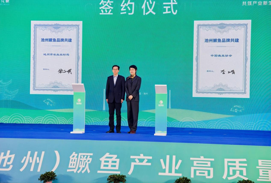 会上,中国渔业协会副会长李清与池州市农业农村局局长朱文明共同签署池州鳜鱼品牌共建战略合作协议,双方将围绕“秋浦花鳜”区域公用品牌建设展开深度合作。作为池州鳜鱼产业长期的战略合作伙伴,中国渔业协会将持续在品牌赋能、市场推广、标准制定等方面提供全方位支持,助力“秋浦花鳜”从地方特产迈向全国知名水产品牌。