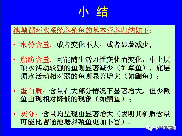 合肥工业大学食品与生物工程学院教授陆剑锋则介绍了《基于池塘及集装箱循环水系统养殖的鱼类营养品质检测与分析》。他主要从鱼类主要检测指标及采用的方法、池塘循环水系统养殖的鱼类品质和集装箱循环水系统养殖的鱼类品质三方面作了介绍。通过对比实验,他得出过以下结论: