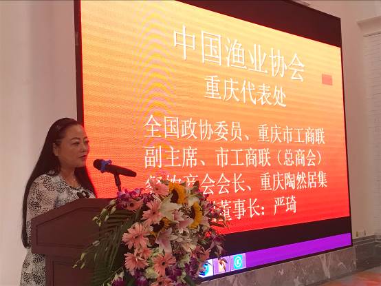 2019年8月28日,中国渔业协会重庆代表处成立仪式在重庆盛汇广场举行。中国渔业协会常务副会长兼秘书长林毅,全国政协委员、重庆市工商联副主席、重庆市工商联(总商会)餐饮商会会长、重庆陶然居集团董事长严琦,重庆市工商联党组副书记、副主席张莉,重庆市商务委市场处二级调研员张嵛健、重庆市水产技术推广总站副站长李虹、重庆富民银行常务副行长晏东等领导和来自重庆市水产养殖、流通、加工、餐饮、休闲等方面企业的代表和媒体记者出席了仪式。