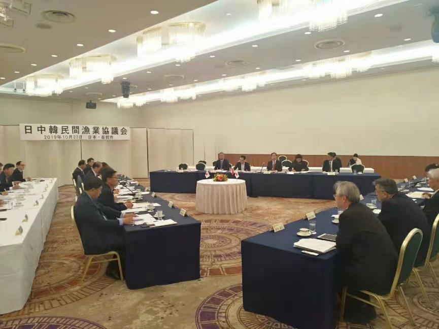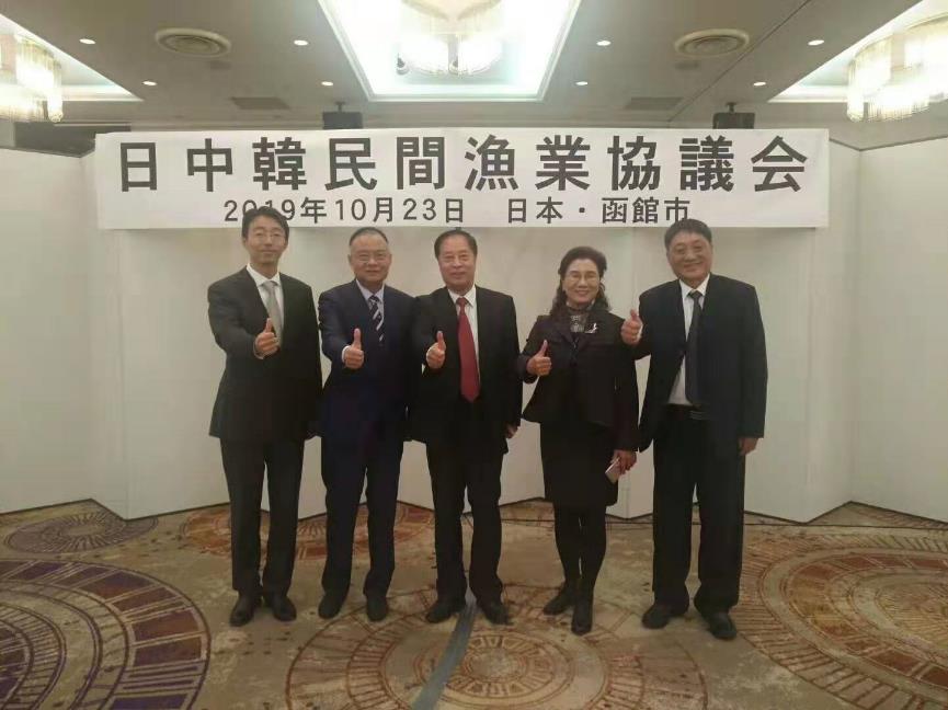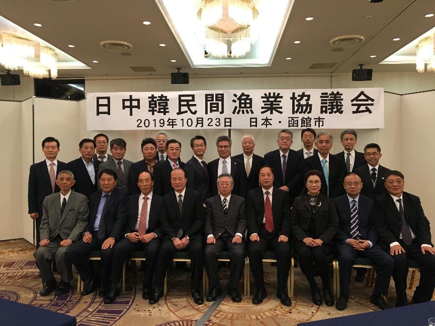 2019年10月23日,中日韩民间渔业协议会在日本函馆召开,中国渔业协会会长赵兴武、大日本水产会会长白须敏朗、韩国水产会会长金永奎分别率中、日、韩代表团参会。