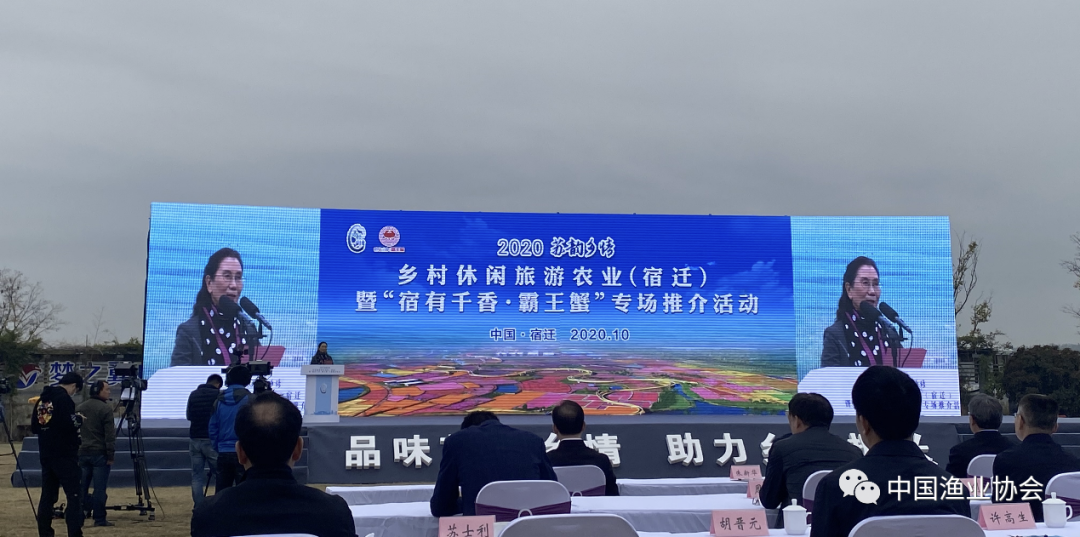 10月29日,2020“苏韵乡情”乡村休闲旅游农业(宿迁)暨“宿有千香·霸王蟹”专场推介活动在江苏宿迁三台山国家森林公园举行。江苏省副省长赵世勇、省政府副秘书长诸纪录、省农业农村厅厅长杨时云、副厅长朱新华,省文化和旅游厅二级巡视员王海平,中国渔业协会副会长兼专家工作委员会主任王德芬,宿迁市委副书记、市长王昊,市委副书记宋乐伟,副市长林小异,市政府秘书长闫辉等领导和嘉宾出席了活动。王德芬副会长代表中国渔业协会宣读了“宿有千香·霸王蟹”专家鉴定评语。