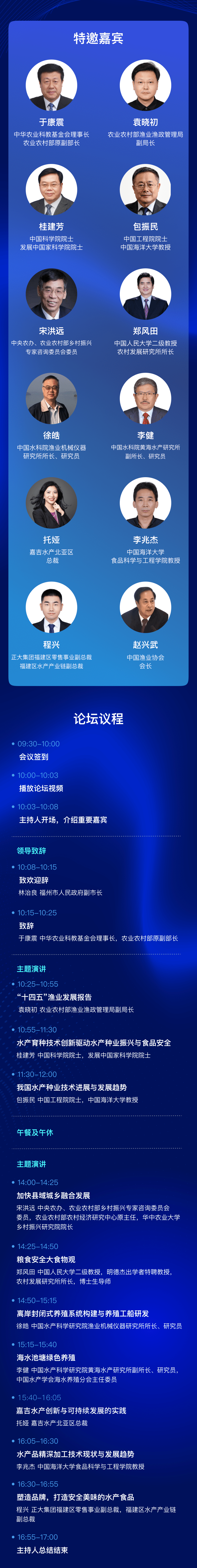 论坛以“聚焦产业振兴 推动高质量发展”为主题,将邀请行业主管部门领导、知名院士、专家及企业家到会做精彩演讲,共商大食物观背景下的渔业发展大计。