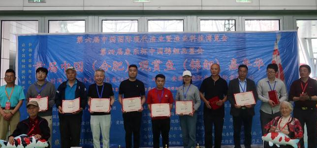 主持人邀请中国渔业协会常务副秘书长于斌为本次活动致词预奖。主持人邀请中国渔业协会副秘书长任宏伟、爱鲤抗癌明星简令嘉、抗美援朝巾帼英雄杨于涵、中国锦鲤文化推广人/国际锦鲤资深人士陶涛、泓宝科技董事长邹国忠、首届中国合肥观赏鱼锦鲤嘉年华负责人雍清、百里百题书法家王兼刚等人为本次活动频奖,本次活动在所有爱好家及公司的努力下取得圆满成功。