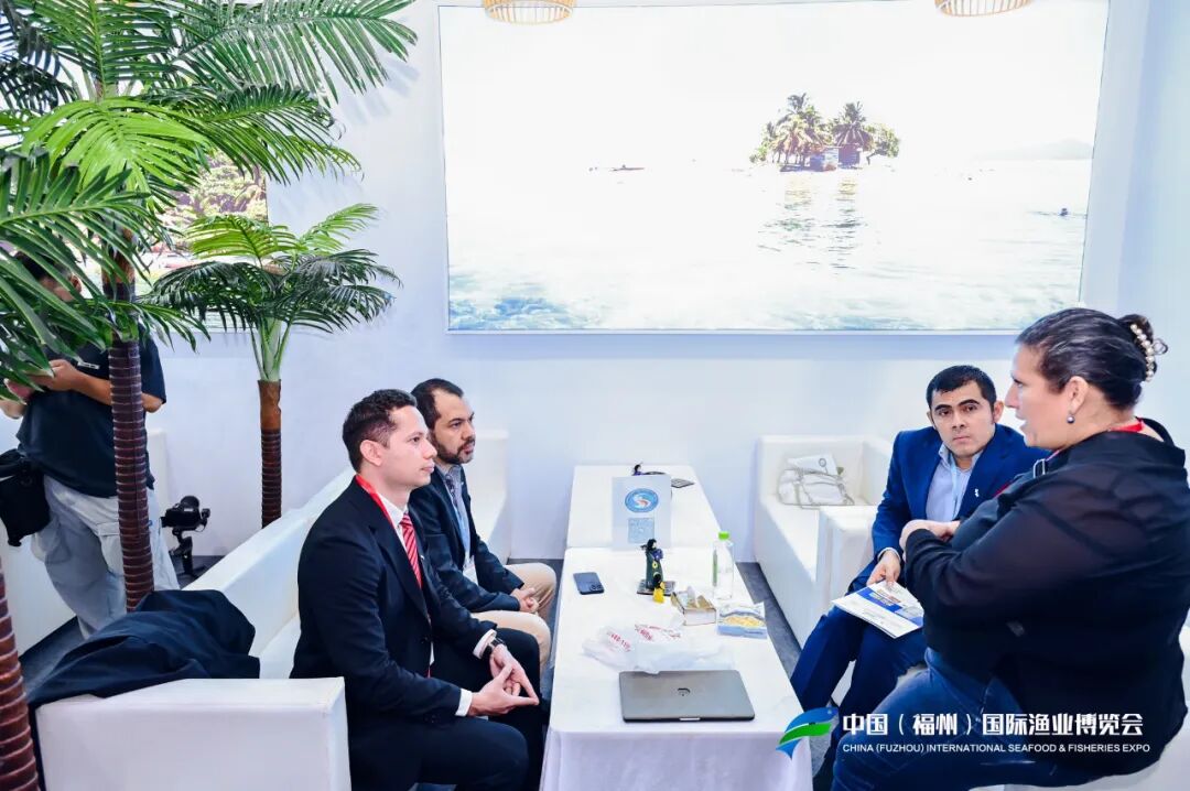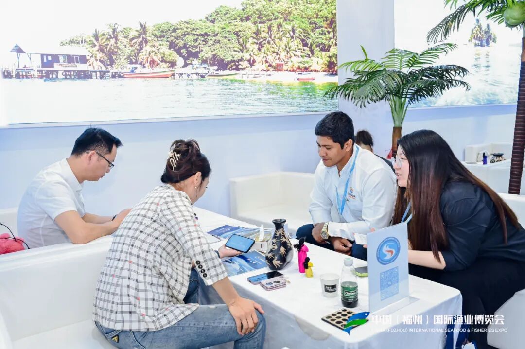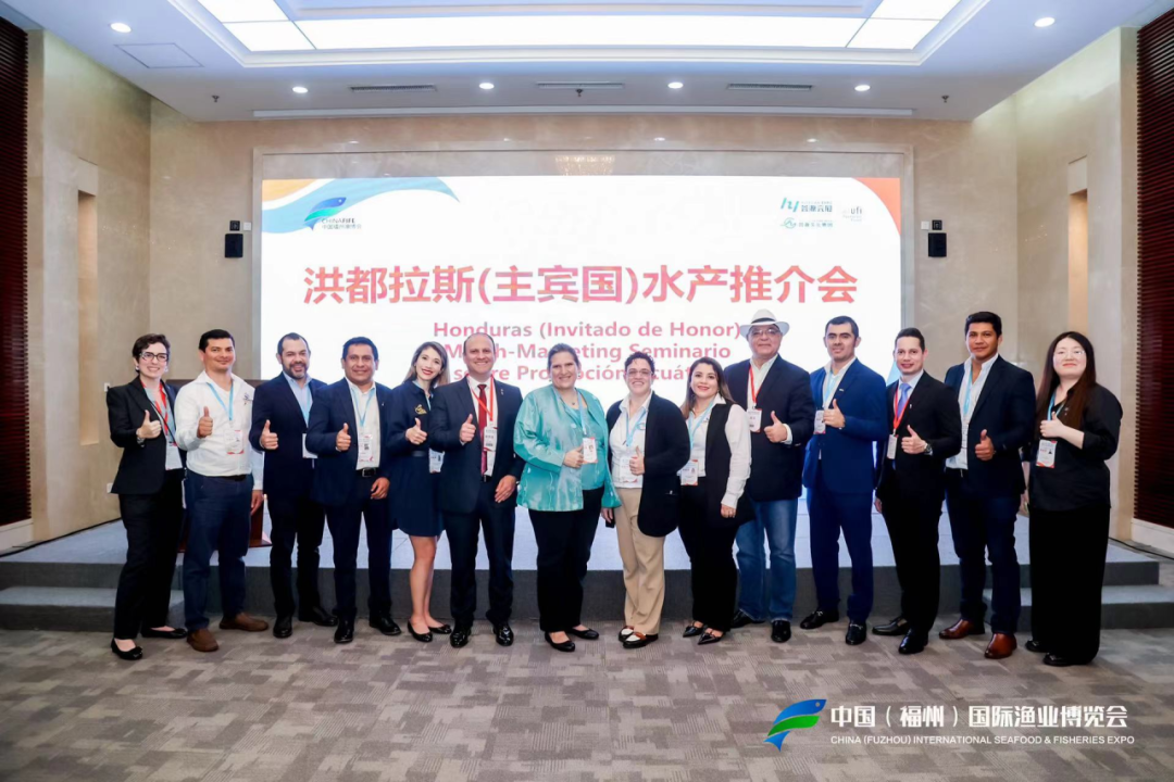 在中国与洪都拉斯建交一周年之际,福州渔博会设置主宾国——洪都拉斯国家馆亮相,展示独具特色的洪都拉斯虾,驻华大使也亲临现场。现场商贸对接氛围火热,目前已与50多家进口商/贸易商达成初步合作意向,部分进口商还将到洪都拉斯实地考察。洪都拉斯外长雷纳更是发文盛赞中国福州渔博会。
