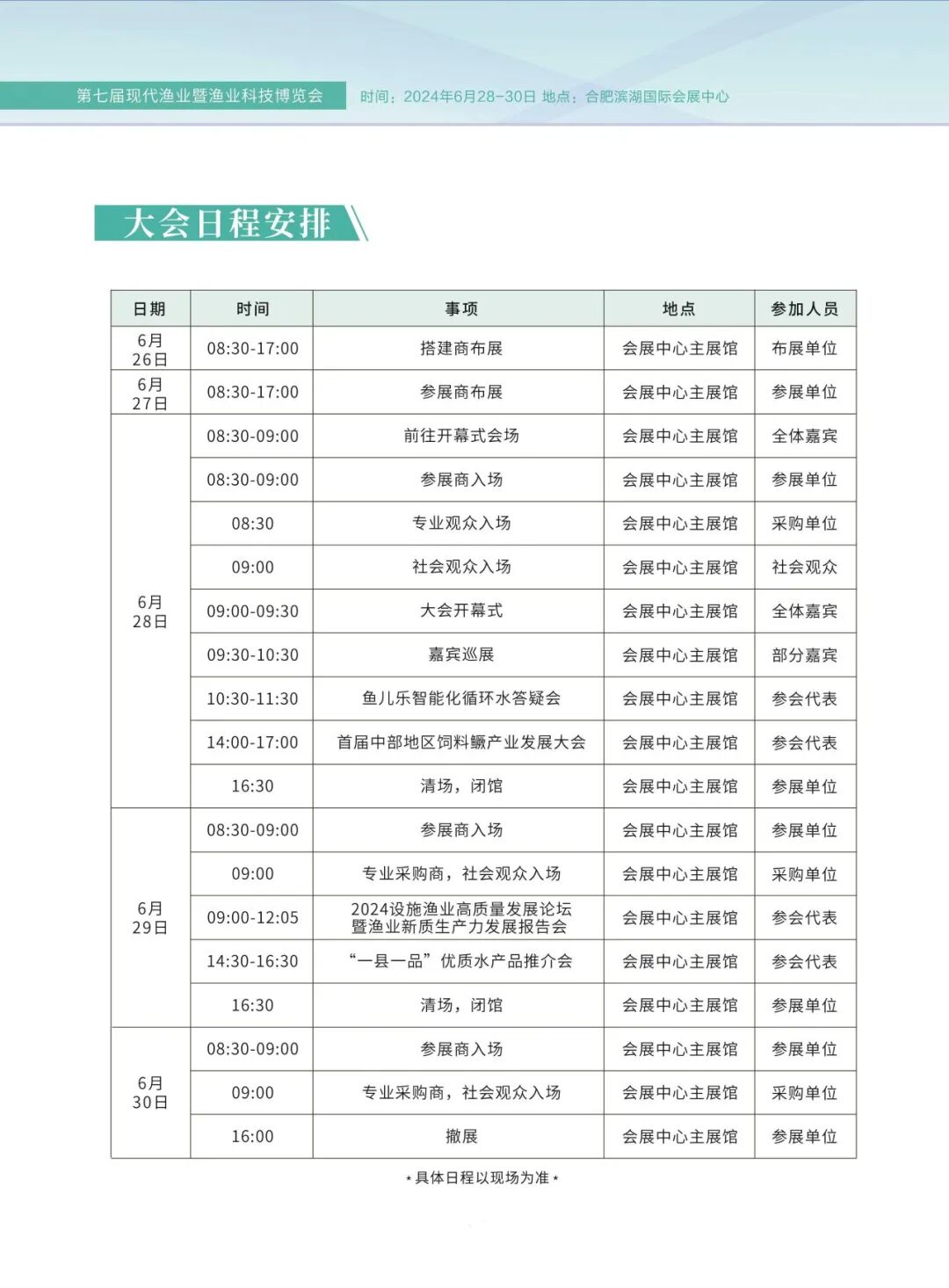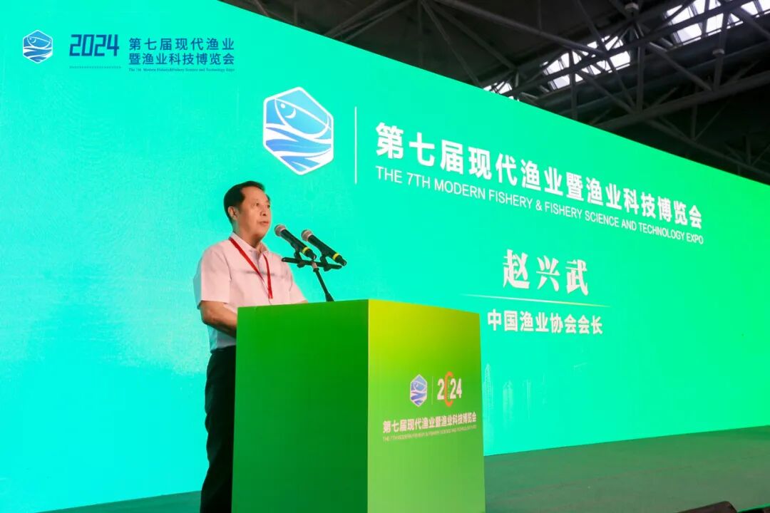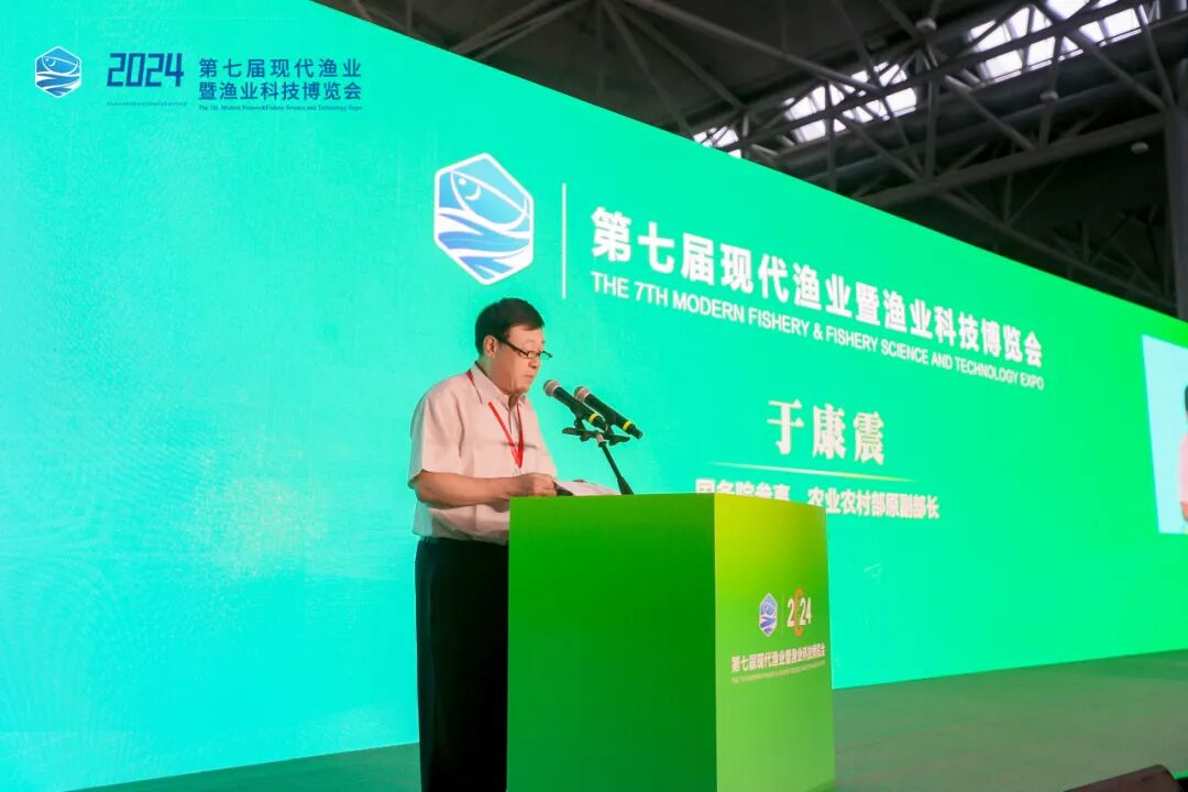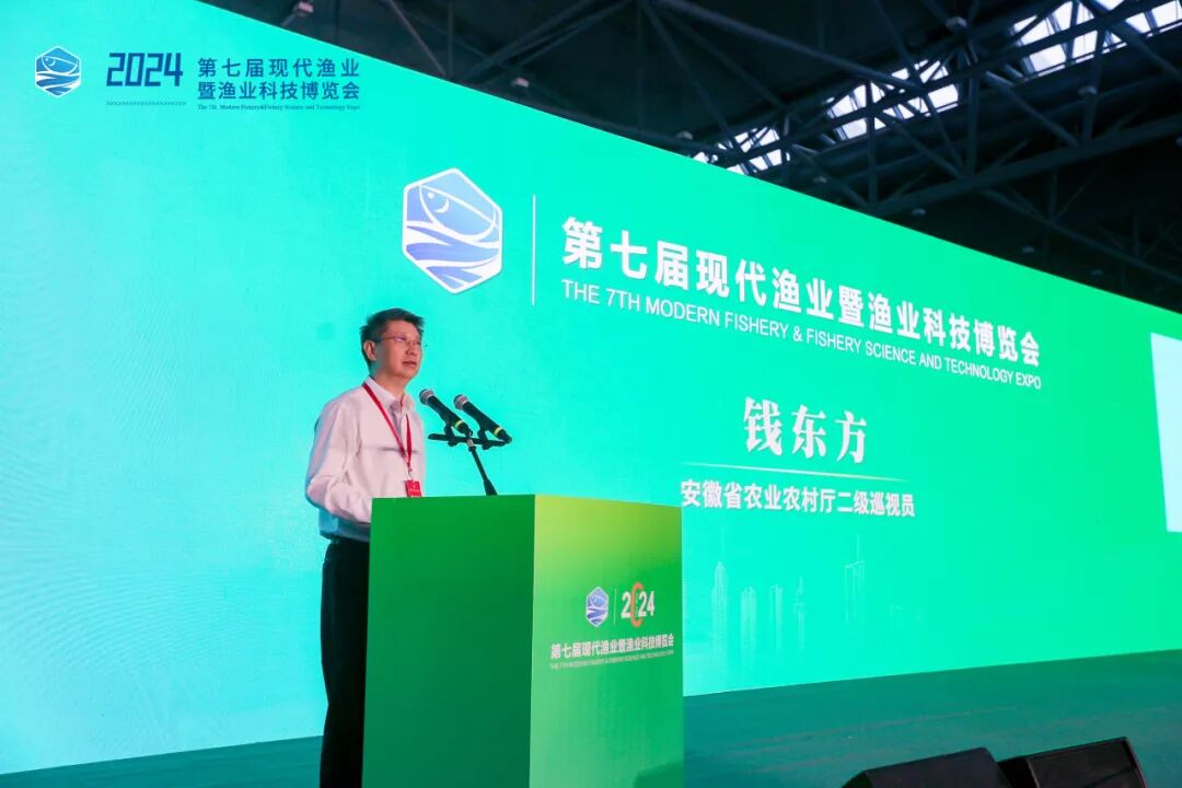 由中国渔业协会和安徽中设国际会展集团共同主办的第七届现代渔业暨渔业科技博览会(以下简称渔博会)于今天上午在合肥开幕。国务院参事、农业农村部原副部长于康震,海军某部原政委、少将严晓培,中国渔业协会会长赵兴武,全国水产技术推广总站中国水产学会副站长、研究员何建湘,农业农村部原正司级巡视员、研究员、国家首席农经专家关锐捷,全国水产技术推广总站中国水产学会办公室主任(人事处处长)李胜利,农业农村部渔业渔政管理局科技与市场加工处副处长(正处长级)周宏亮,中国水产科学研究院成果转化处处长王书磊,中国渔业协会副会长、宁夏渔业协会会长赵峰,安徽省农业农村厅二级巡视员钱东方,安徽省渔业协会会长陈静宏以及有关行业嘉宾等出席了开幕式。