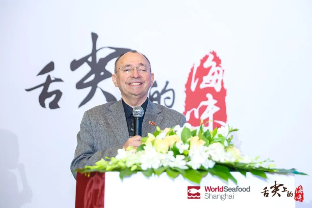 中华全国工商业联合会水产业商会—常务会长田全海、上海市农农业农村委员会—副主任陆峥嵘、中国渔业协会—党支部书记李胜利、中国水产流通与加工协会—会长崔和、上海水产行业协会—会长谢峰、上海水产集团有限公司—总裁王海峰、上海市食品协会—常务会长高克敏、海维集团—亚洲区总裁Thomas Whelan、中国渔业协会水产商贸分会—执行会长葛锦海等水产行业同仁出席开幕式。