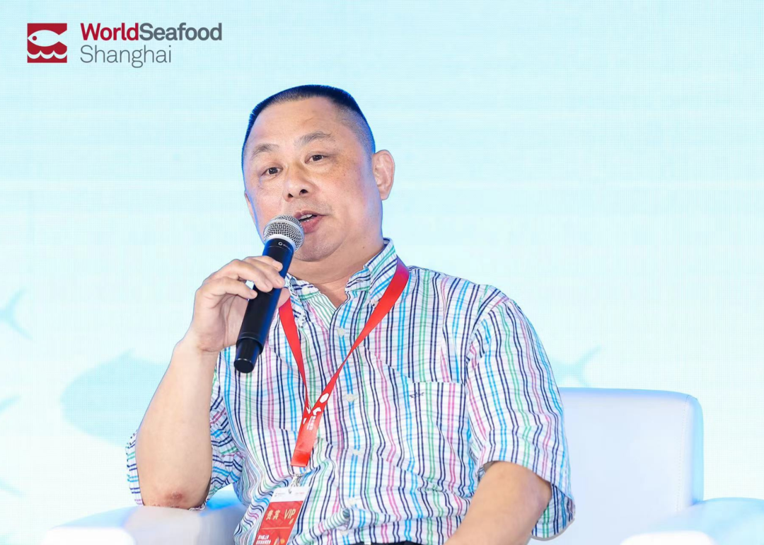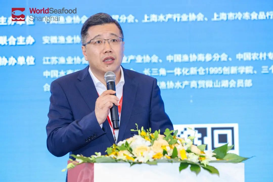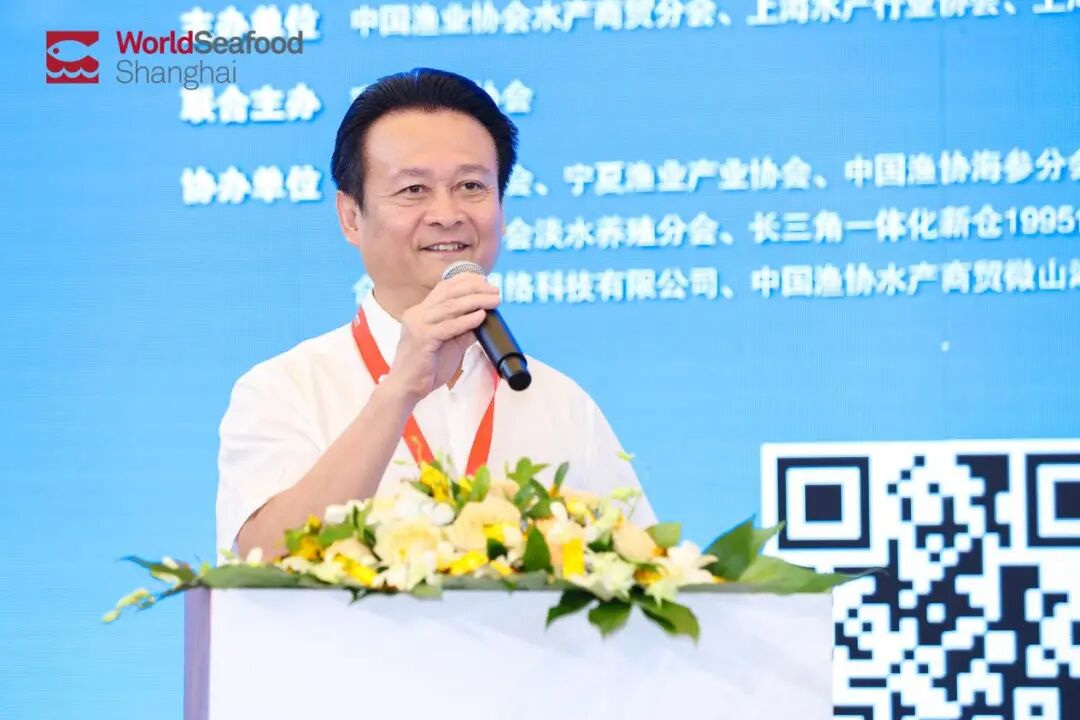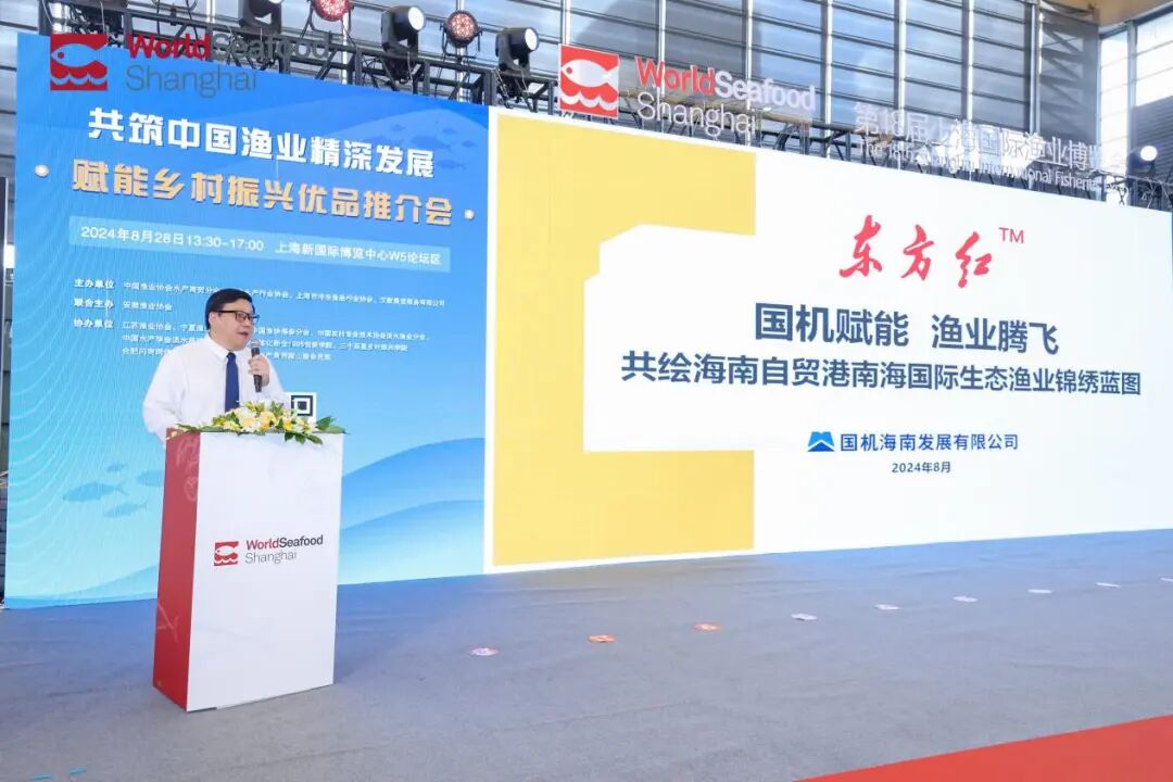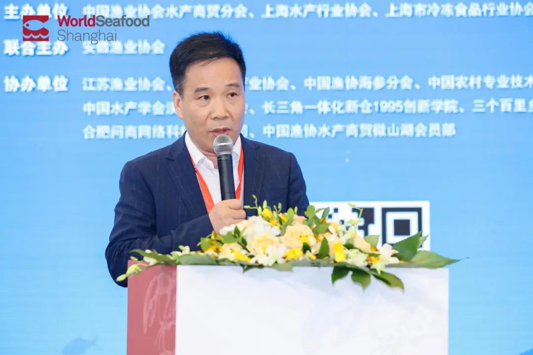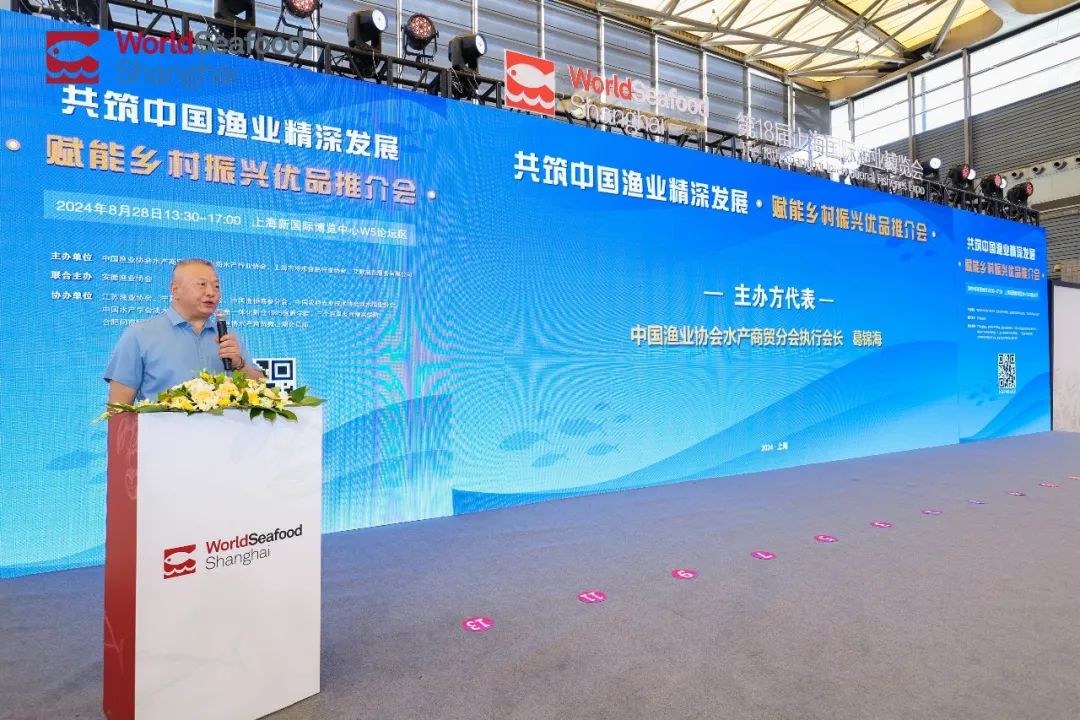 上海国际渔业博览会&歌华食材展的创始人,上海艾歌展览服务有限公司执行董事韩友恒致辞主办方代表——中国渔业协会水产商贸分会执行会长葛锦海会长宣布“2024共筑中国渔业精深发展,赋能乡村振兴优品推介会”正式启动 2024共筑中国渔业精深发展,赋能乡村振兴优品推介会启动仪式湛江,位于中国大陆最南端,三面临海,海洋面积2.1万平方公里,大小岛屿102个,海岸线总长2023.6公里, 2023年水产养殖面积117.5万亩,深海网箱3500多个,养殖总量128.5万吨,产值近300亿元,连续20多年居广东省第一,素有中国金鲳鱼之都、中国生蚝之乡、中国对虾之都的美誉。湛江,这座南国的明珠,倚海而生,与波涛共舞,满载着大海的馈赠向我们走来,在这片富饶之地,渔民们用勤劳书写着美好生活的诗篇。湛江的水产,不仅是餐桌上的美味,更蕴含着这座城市独有的韵味与风情。