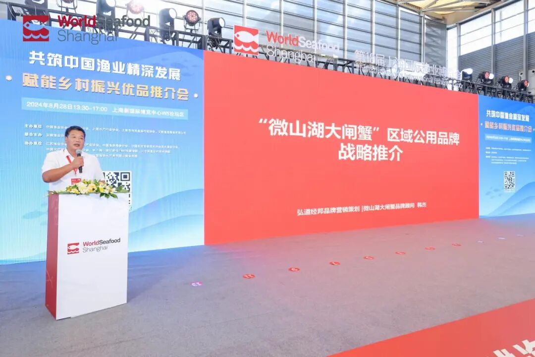 湛江渔业企业代表和上海供应链相关企业代表签订合作意向书太平洋安信农险协同中心主任蒯本非与上海及湛江企业签订保险合作意向书 安心鱼苗安心产,安心销售安心鱼!东方渔谷科技有限公司余昱钧先生带来《安心鱼解决方案》分享“国机赋能,渔业腾飞”,海南琼海潭门渔歌食材科技发展有限责任公司上台推介秋风起,蟹飘香,微山湖大闸蟹以其“青壳”“白肚”“金爪”“黄毛”的典型特征被大家熟知,微山湖大闸蟹代表发言。好的产品不仅需要市场的检验,也需要专家、企业家智囊团的传经送宝,本次活动邀请到了多位行业权威与学者,他们纷纷从自身的专业角度和市场认知度方面进行了指导与点评。 中渔协水产商贸分会荣誉会长、阳澄湖大闸蟹行业协会创始会长杨维龙2024共筑中国渔业精深发展,赋能乡村振兴优品推介会圆桌讨论环节,特邀渔业大咖、专家学者就共筑中国渔业精深发展,探讨赋能乡村振兴话题展开讨论,探索中国渔业精神发展之路,共赴乡村振兴新篇章。圆桌分享环节由水产养殖网总编蔡俊主持,原上海海洋大学副校长李家乐、上海水产行业协会常务副会长王成、上海海洋大学教授成永旭、国家虾蟹产业技术体系蟹加工与保鲜岗位科学家/合肥工业大学教授陆剑锋、中国水产科学研究院东海水产研究所主任郭全友、太平洋安信农业保险股份有限公司协同发展中心主任蒯本非、安徽省渔业协会会长陈静宏先后做了精彩的分享。