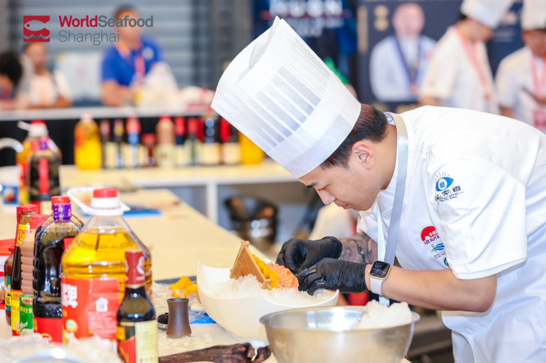 太平洋安信农险公司党委书记、总经理石践分享保险助力渔业产业高质量发展的宝贵经验太平洋安信农险党委委员、纪委书记、监事会主席陈元良进行发布湛江渔业企业的优质产品推介。湛江,作为中国重要的渔业基地,以其得天独厚的海洋资源孕育了丰富多样的海产品,这些海产品也得到了刚刚提到的“太渔优”供应链金融模式的加持,湛江的渔业企业代表展示湛江的优质海产品并现场烹饪,让在场嘉宾和消费者一饱口福。上海水产集团龙门食品有限公司、上海葛企实业有限公司、上海南辉商贸有限公司、苏州湖八鲜生态农业发展有限公司、上海新鱼港国际贸易有限公司签订合作意向书