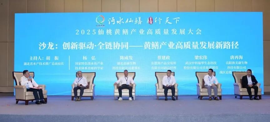 在以“创新驱动·全链协同——黄鳝产业高质量发展新路径”为主题的沙龙环节,国家特色淡水鱼产业技术体系首席科学家杨弘、湖北嘉康生物科技有限公司董事长陈成发、东盟海产品交易所有限公司副总经理蔡建政、武汉中科瑞华生态科技股份有限公司首席营销官梁宏伟、岳阳渔美康生物科技有限公司战区总监兼黄鳝品种主任唐再海,围绕养殖、加工、流通到品牌、文化、销售的全链条升级,探讨如何通过科技创新、模式创新推动产业融合发展。湖北省水产技术推广总站站长胡振主持沙龙。